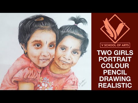 Two girls portrait colour pencil drawing realistic | V School of arts